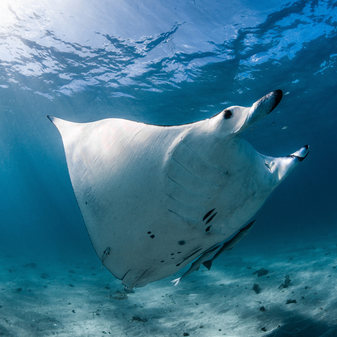 Thanks to ongoing research partnerships and aerial spotting techniques, Ocean Eco Adventures ensures encounters are respectful and non-intrusive. Scientists studying these rays have identified individuals by their unique belly markings, helping track their movements, health, and social behaviours over time.