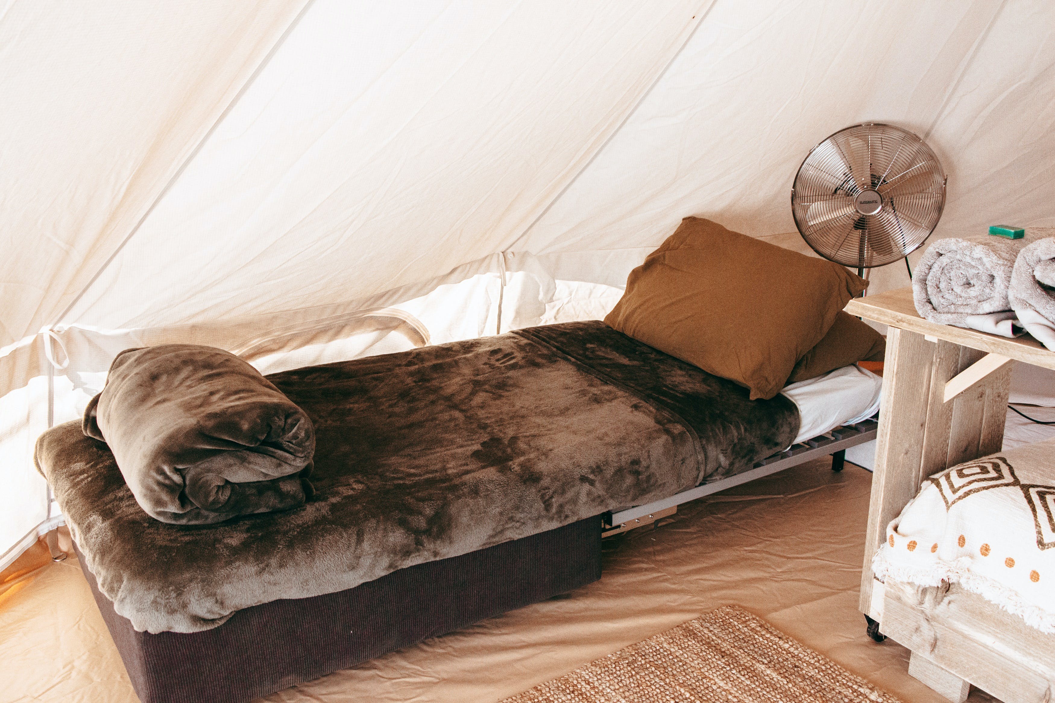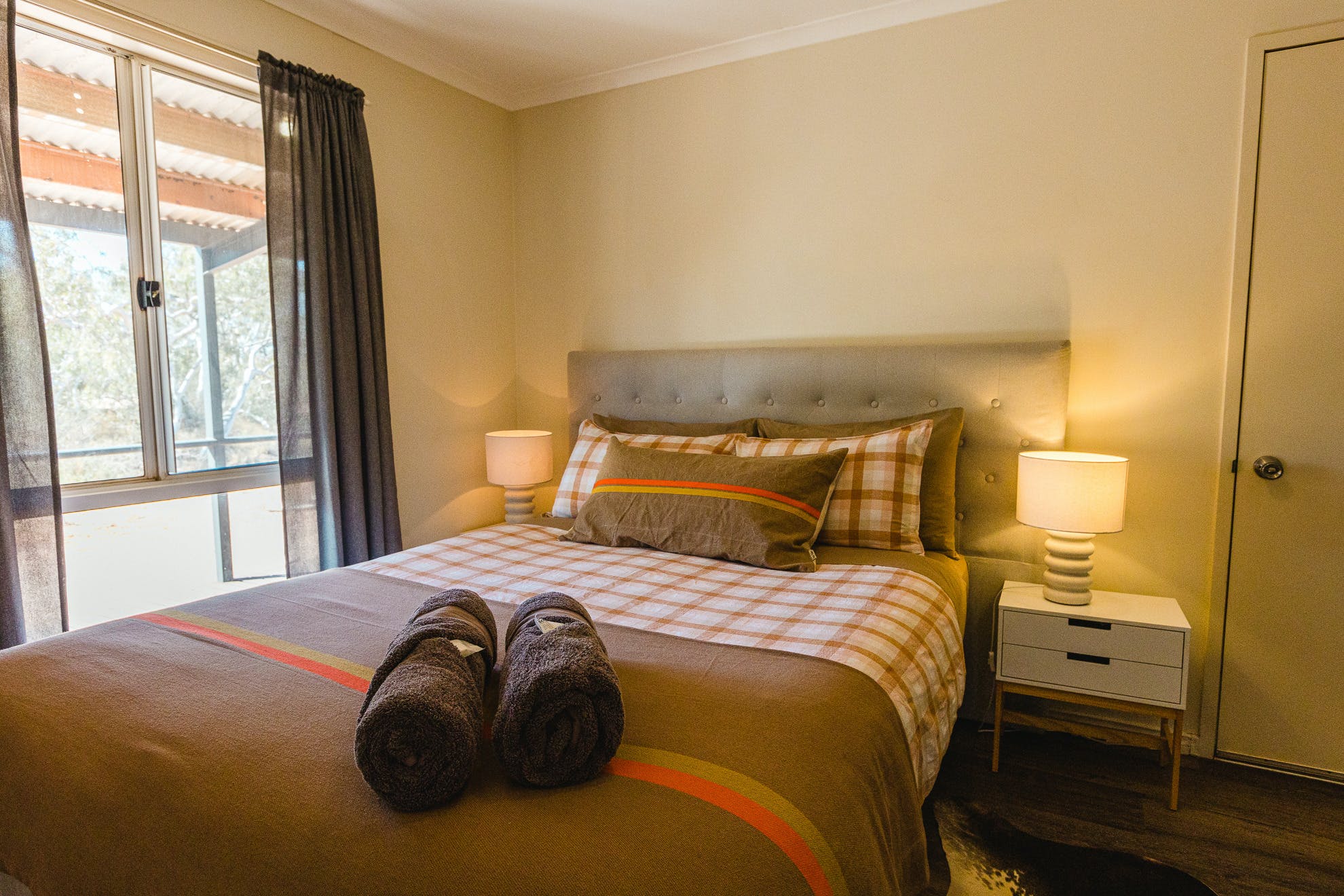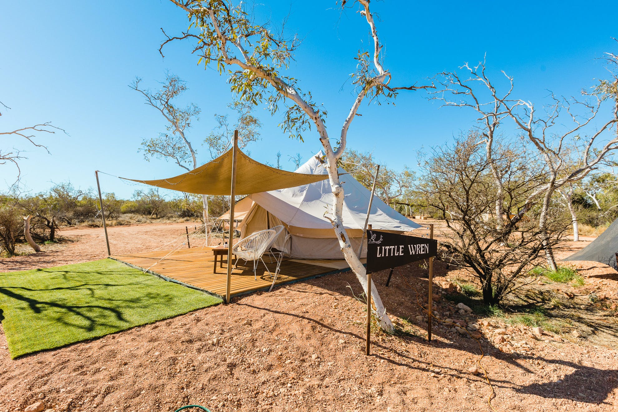 Outback glamping is taken to the next level in the bell tents; Little Wren and Willy Wag Tail. The perfect option for those keen to try camping, but without sacrificing comfort and little luxuries such as a cosy queen bed with soft, stylish linen. The tasteful bell tents have the camping bits you need, with an essentials box filled with plates, cutlery, glasses and even an electric kettle. The bell tents have access to communal showers and toilets - perfect for an outdoor shower under the stars. It's camping made glamourous. Guests have access to a communal kitchen space. No pets allowed.
