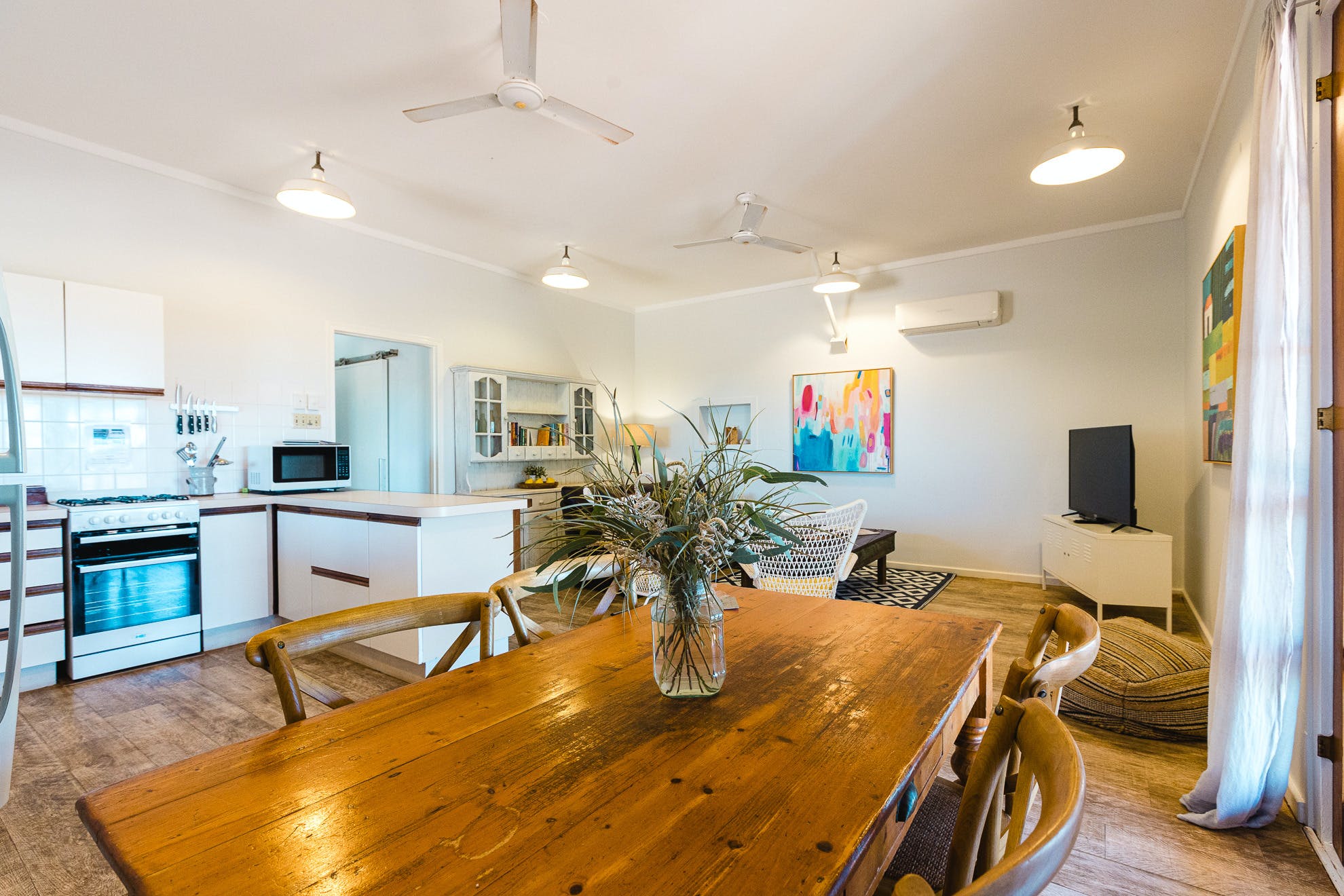Experience comfort and a space to call your own at Kapock, a classic three-bedroom cottage accommodating up to six guests. Adorned with expansive timber verandas, enjoy serene vistas of the lush surrounding paddocks. Discover two charming queen rooms and another with two king singles. Relax in a well-appointed lounge, and enjoy having a fully equipped kitchen for entertaining. there is a private airy bathroom with a separate toilet and laundry. Each area has aircon or ceiling fans for comfort on those warm days. Outside, relish in the barbeque, fire pit, seating, and hammock, while embracing the panoramic views. perfect for the whole family to gather.
