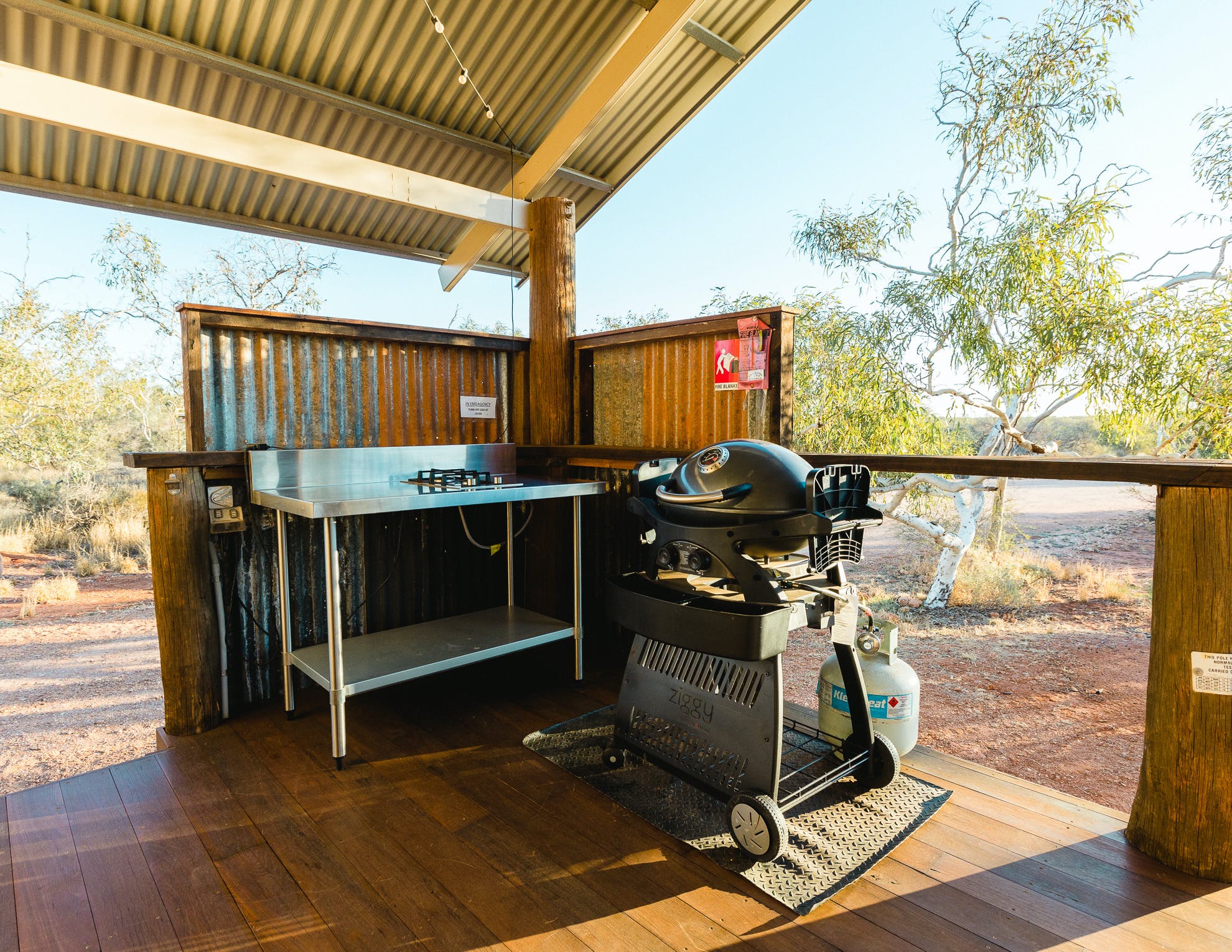 Camping is where it all began and remains the most popular choice for those on the road. Experience a serene bush camping haven at Bullara Station Stay. The sites can fit almost every rig size, shape and type. They are also a pet-friendly campsite, so your furry friend can tag along. Choose from powered or non-powered sites, and enjoy a campsite with a vibe like no other. Wake up to the glow of sunrise on the red sand and the symphony of birdsong in the gum trees. Shower outdoors in the iconic Lava Tree showers or try out the outdoor options, revel with new friends around the communal fire pits or cook up a storm in a well-equipped communal camp kitchen. It's station camping, reimagined. For overnight guests, there are walking trails from the camping grounds and lots to see around the station. There is a four-wheel-driving track to the Exmouth Gulf, fishing and exploring; set up on the deck, take your lunch and enjoy. Access to the Camping Grounds is two-wheel-drive accessible.