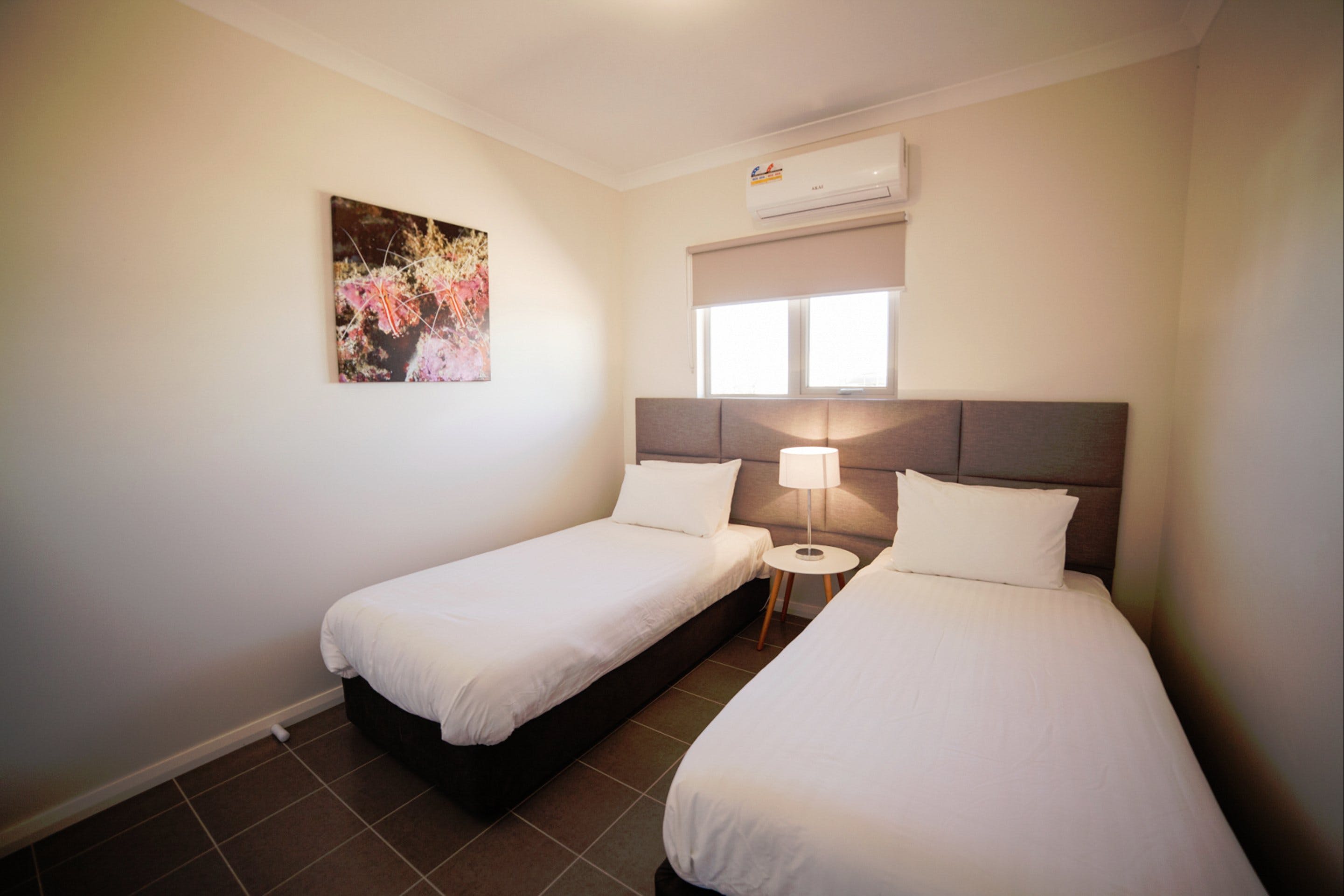 Perfect for families and friends, our Two Bedroom Apartment offers a spacious and relaxing retreat. The master bedroom features a queen-sized bed and ensuite, while the second bedroom includes two king single beds with its own separate bathroom for added convenience. Enjoy the comfort of air-conditioning throughout, a fully equipped kitchen, and a modern furnished living and dining area. Step outside to your private alfresco with a BBQ, ideal for relaxed holiday meals. The apartment also includes private laundry facilities, Foxtel, WiFi, and complimentary parking for your car and boat right at your doorstep. A welcoming home base for your Exmouth escape.