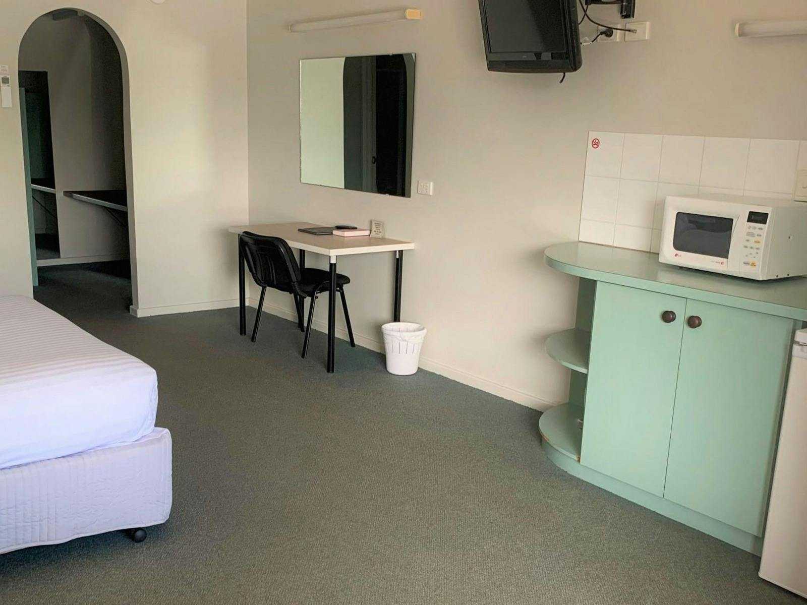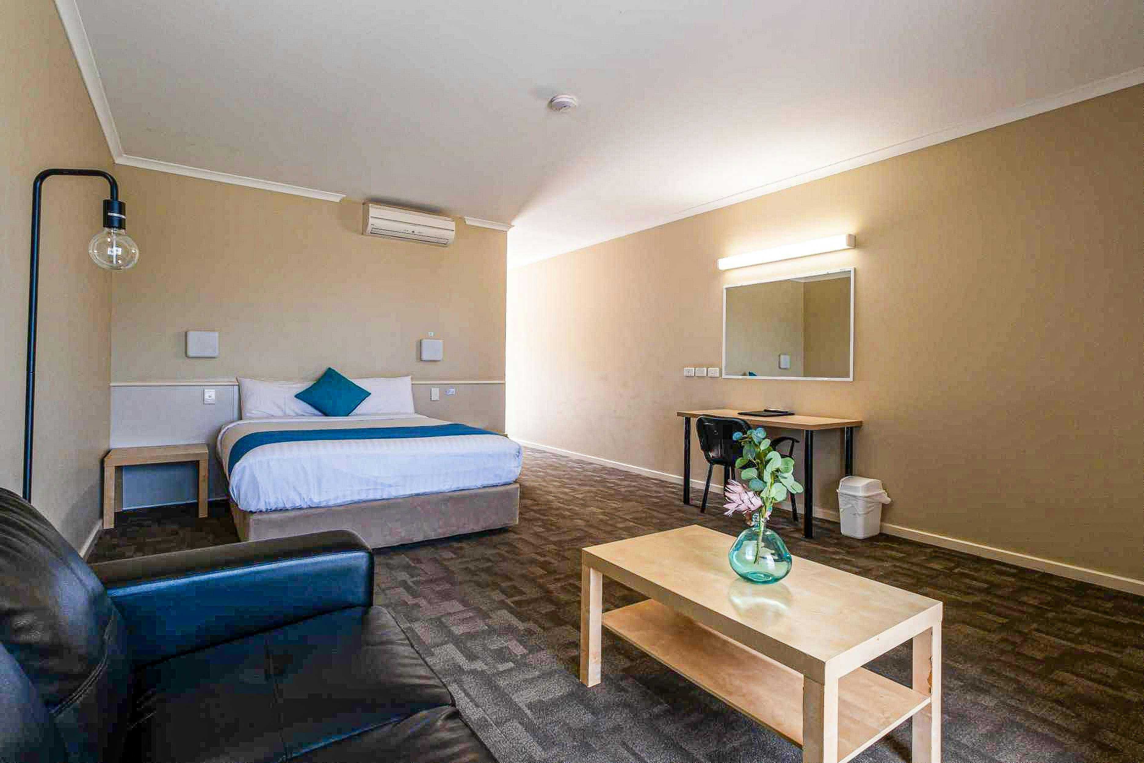 These spacious hotel rooms have a separate ensuite and dressing room. Linen and towels are provided. Features include air conditioning, television, lounge, desk, microwave, mini fridge, kettle, hair dryer and ironing facilities. All rooms have balconies, free wifi, and ample parking for vehicles of all sizes. Complimentary breakfast buffet available to in-house guests 5.00am-8.30am daily.