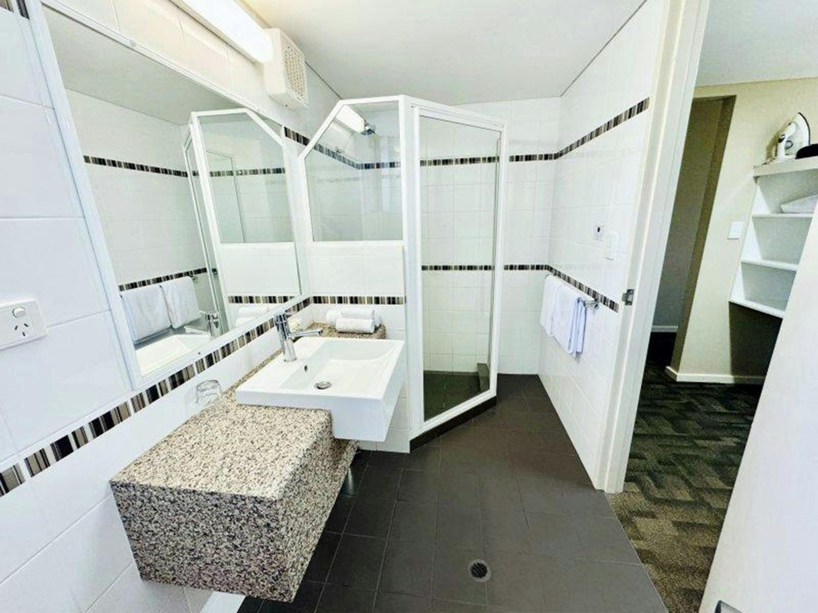 These modern, spacious hotel rooms have one queen and one king single bed, a separate ensuite and a dressing room. Linen and towels are provided. Other features include air conditioning, television, lounge, desk, microwave, mini fridge, kitchen sink, kettle, hair dryer and ironing facilities. Adjoining rooms are available on request (subject to availability). Complimentary breakfast buffet available to in-house guests 5.00am-8.30am daily!