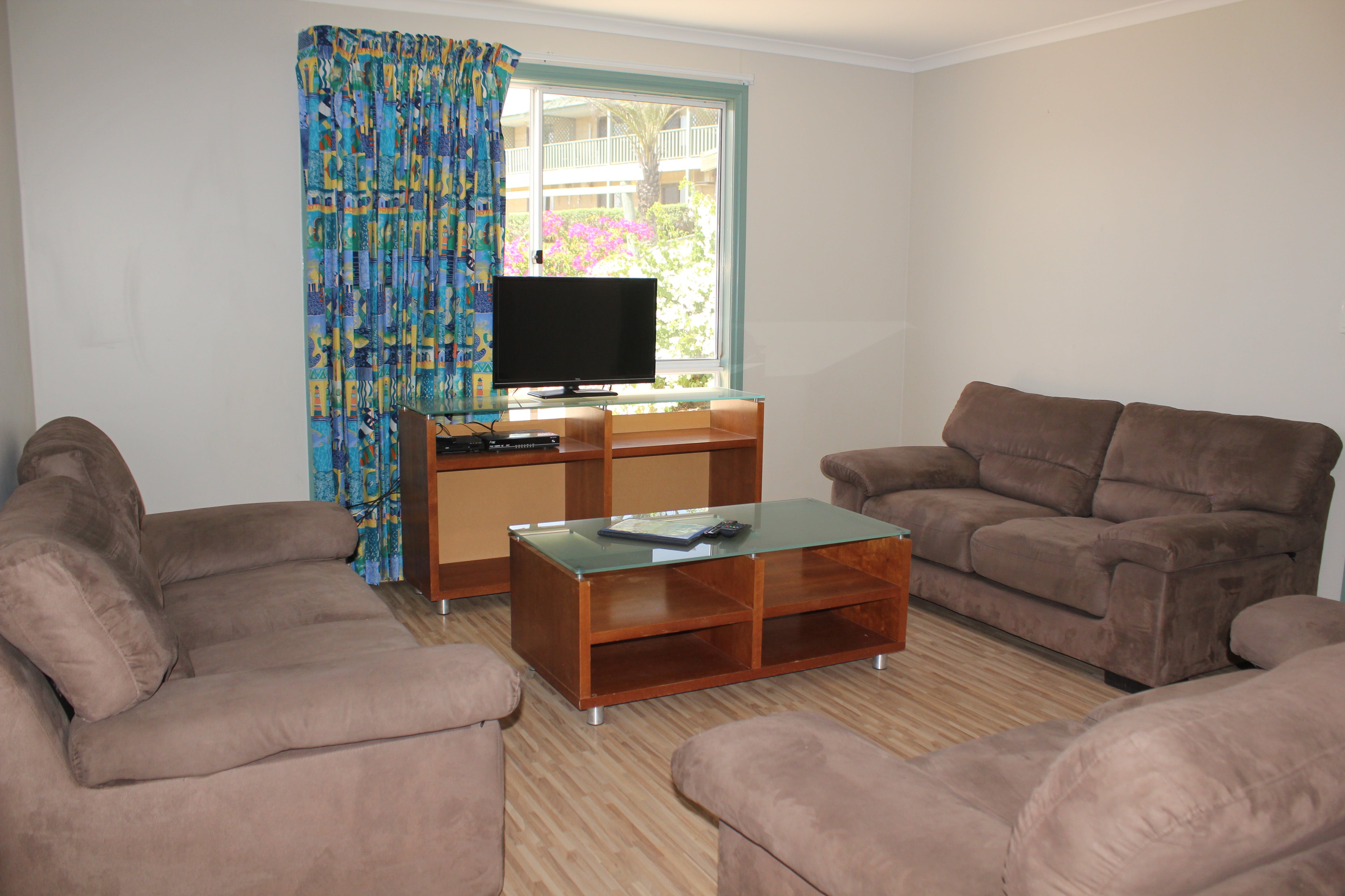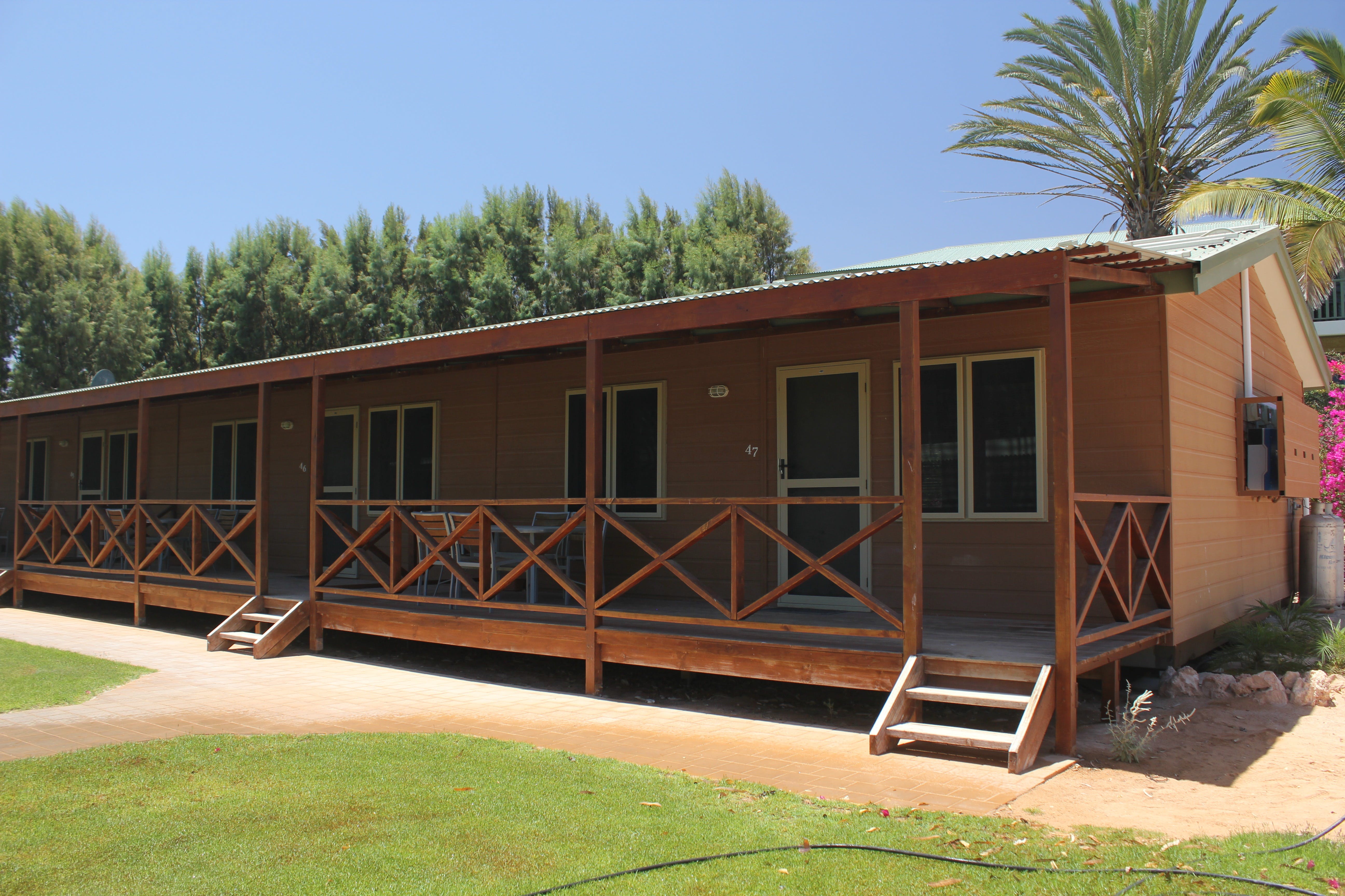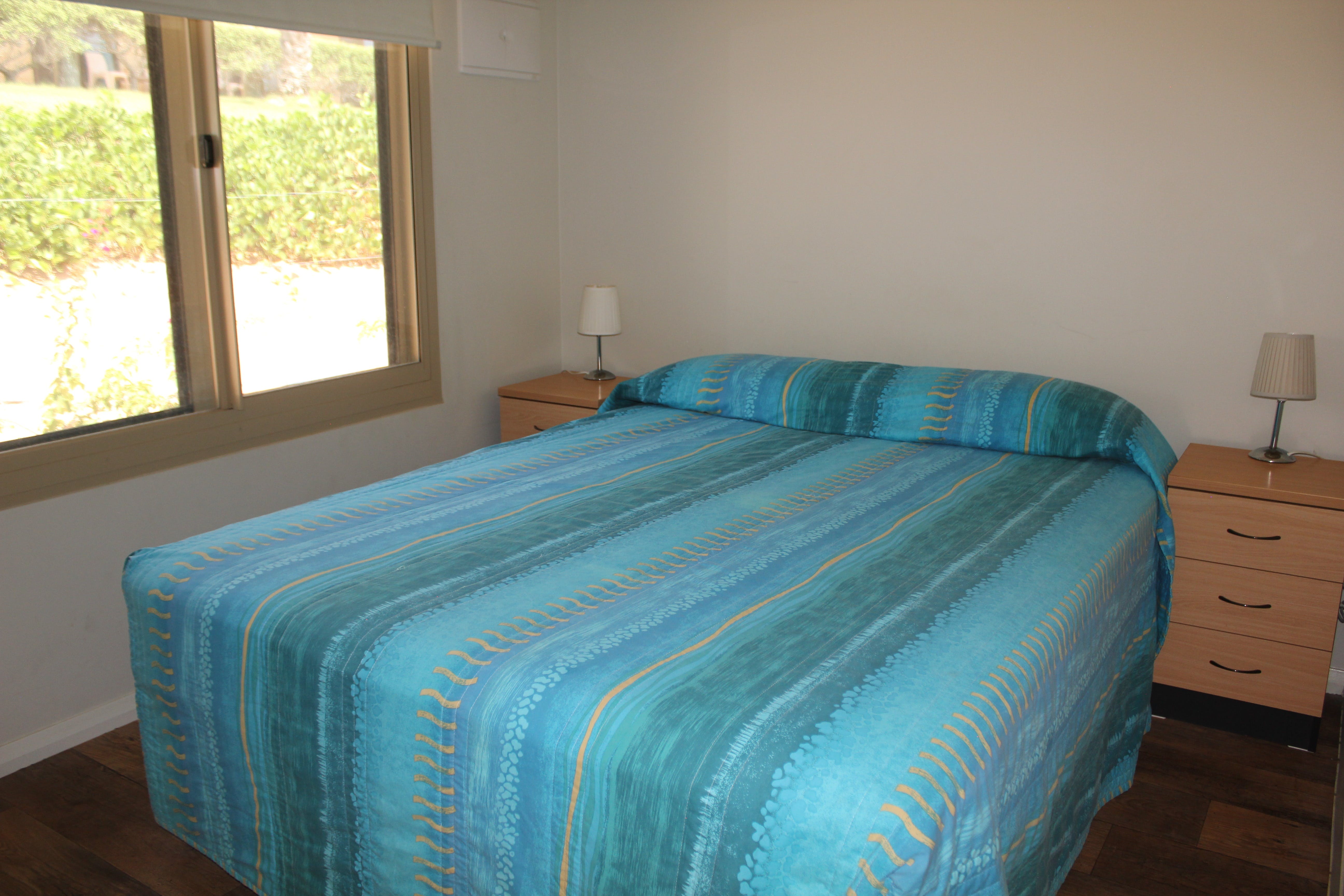 Park Villas are modern, self-contained, air-conditioned units with two bedrooms. These Villas have satellite television and a fully equipped kitchen, along with cold freshwater taps in both the kitchen and bathroom. Ideal for families or couples wanting a little extra room, Park Villas have a Queen bed in one bedroom, a Single bed and a set of single bunks in the second bedroom. Maximum occupancy is three adults and two children.