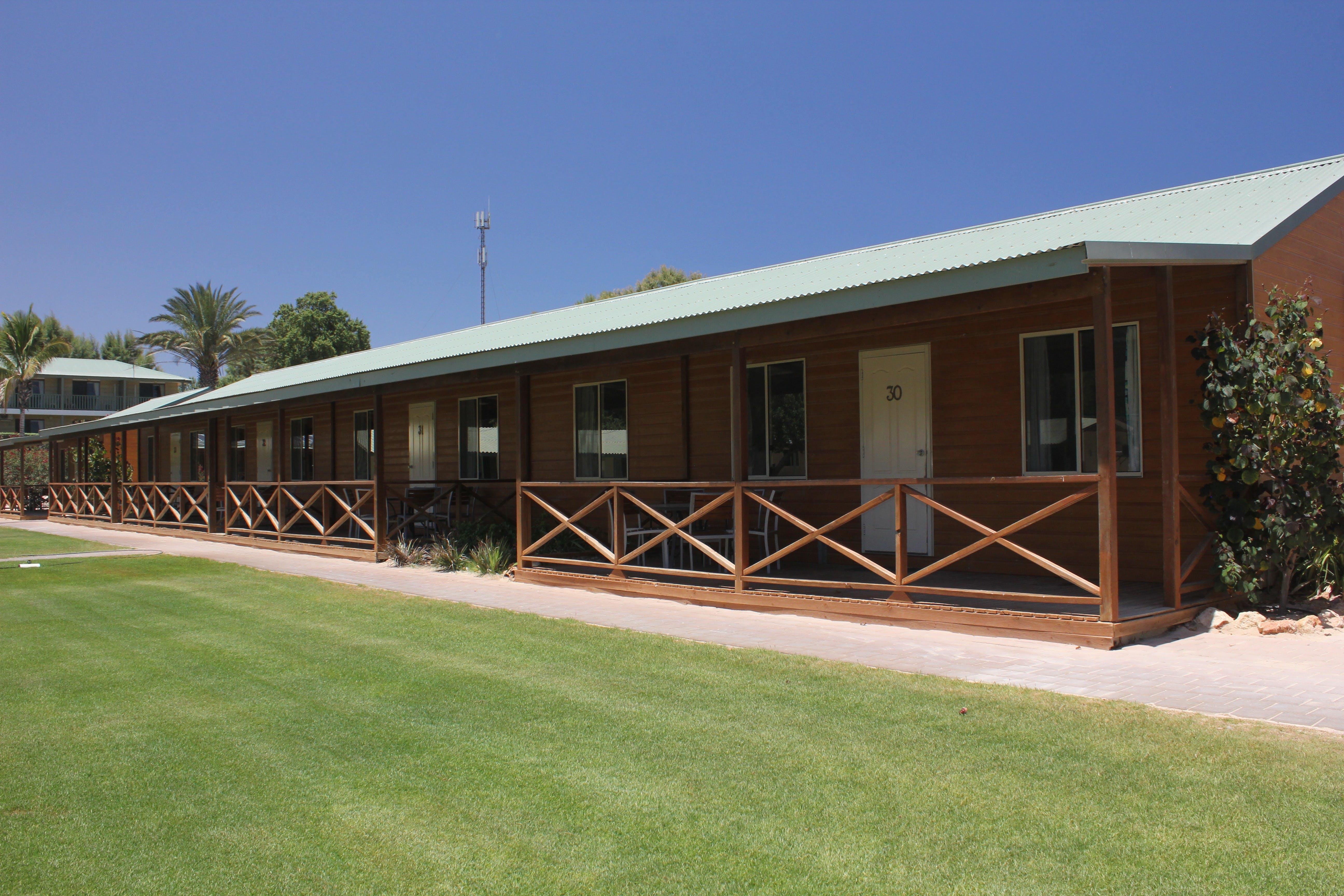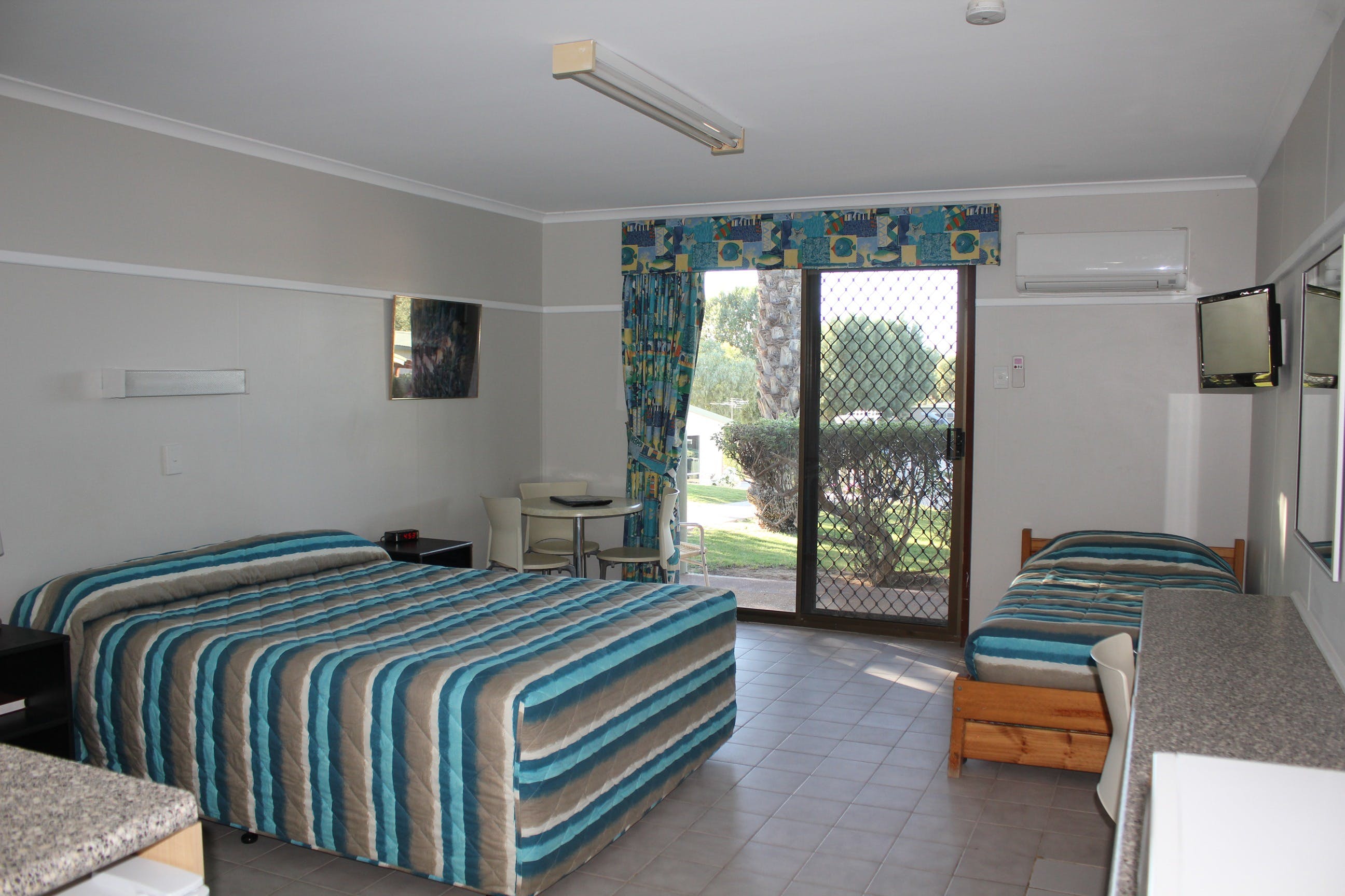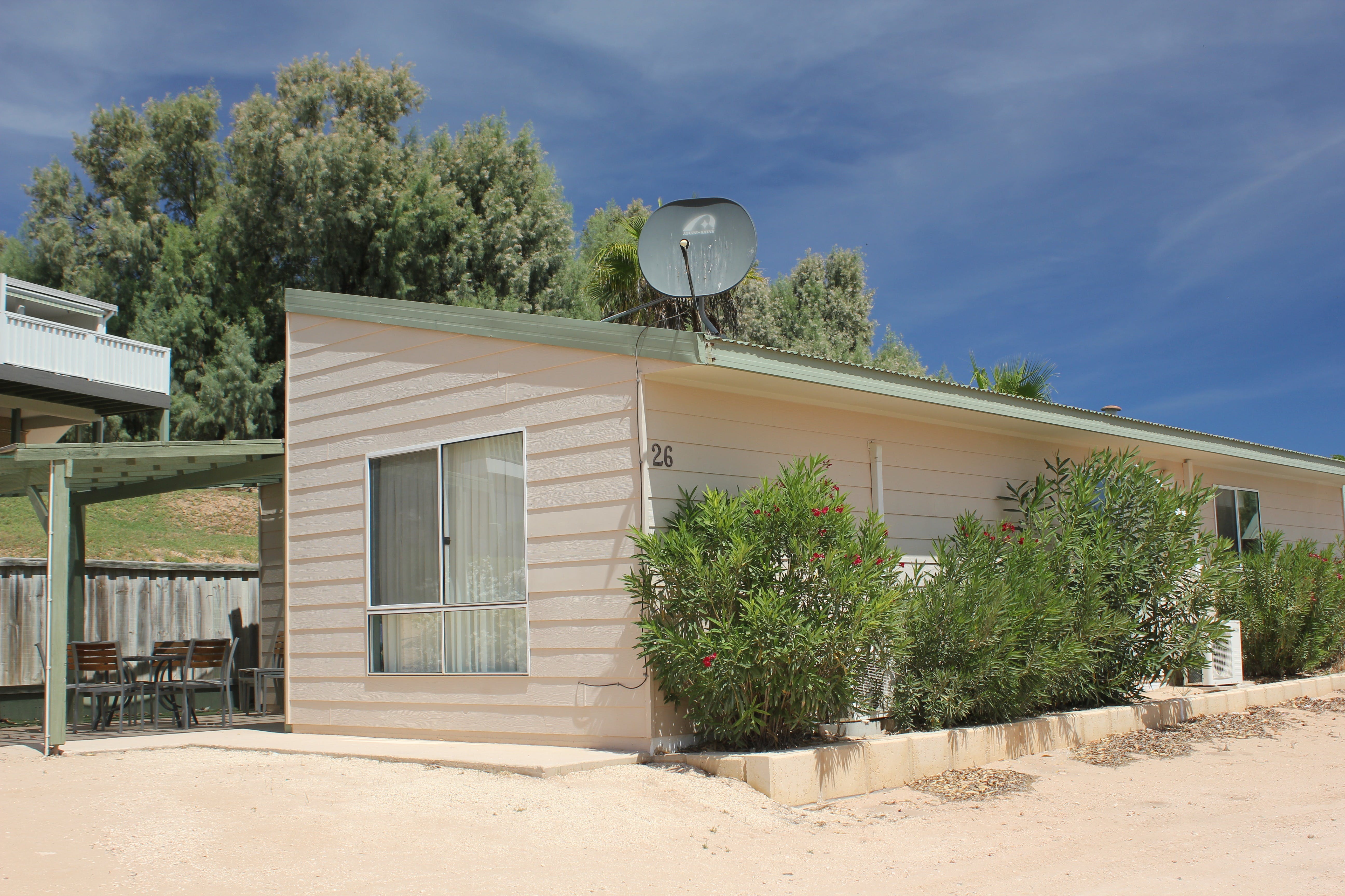 Park Villas are modern, self-contained, air-conditioned units with two bedrooms. These Villas have satellite television and a fully equipped kitchen, along with cold freshwater taps in both the kitchen and bathroom. Ideal for families or couples wanting a little extra room, Park Villas have a Queen bed in one bedroom, a Single bed and a set of single bunks in the second bedroom. Maximum occupancy is three adults and two children.