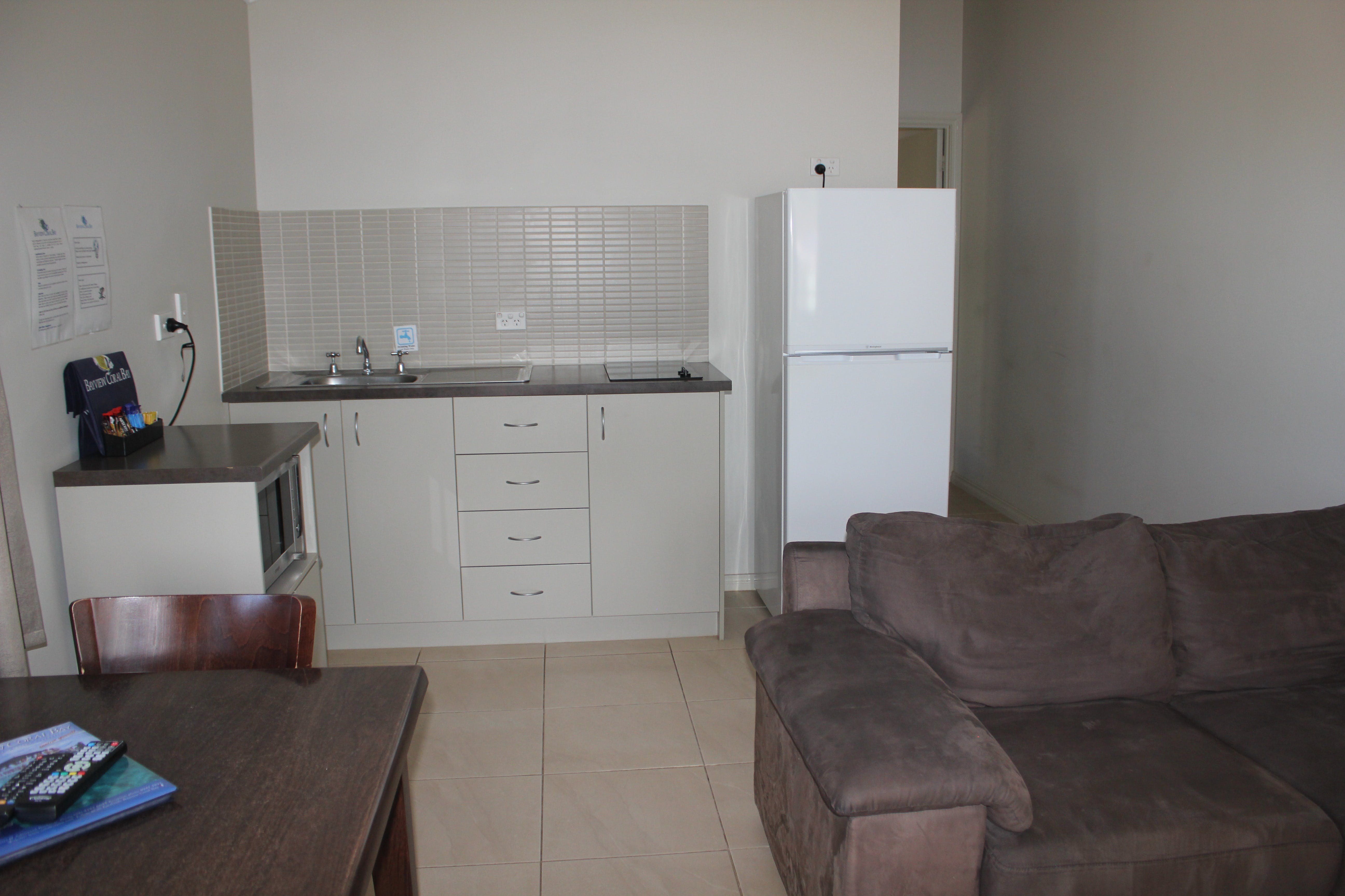 The Bay Lodge is a two-storey building situated in an elevated position towards the back of their Park offering comfortable self-contained, open plan, air-conditioned rooms ideally designed for two adults. Balcony rooms are located on the first floor giving views across the park to Bill’s Bay and have a Queen bed and a Single bed accommodating a maximum of three guests. The ground floor rooms have a choice of a Queen and Single or three Single beds. Both options have a single trundle bed to accommodate a maximum of three adults and one child.
