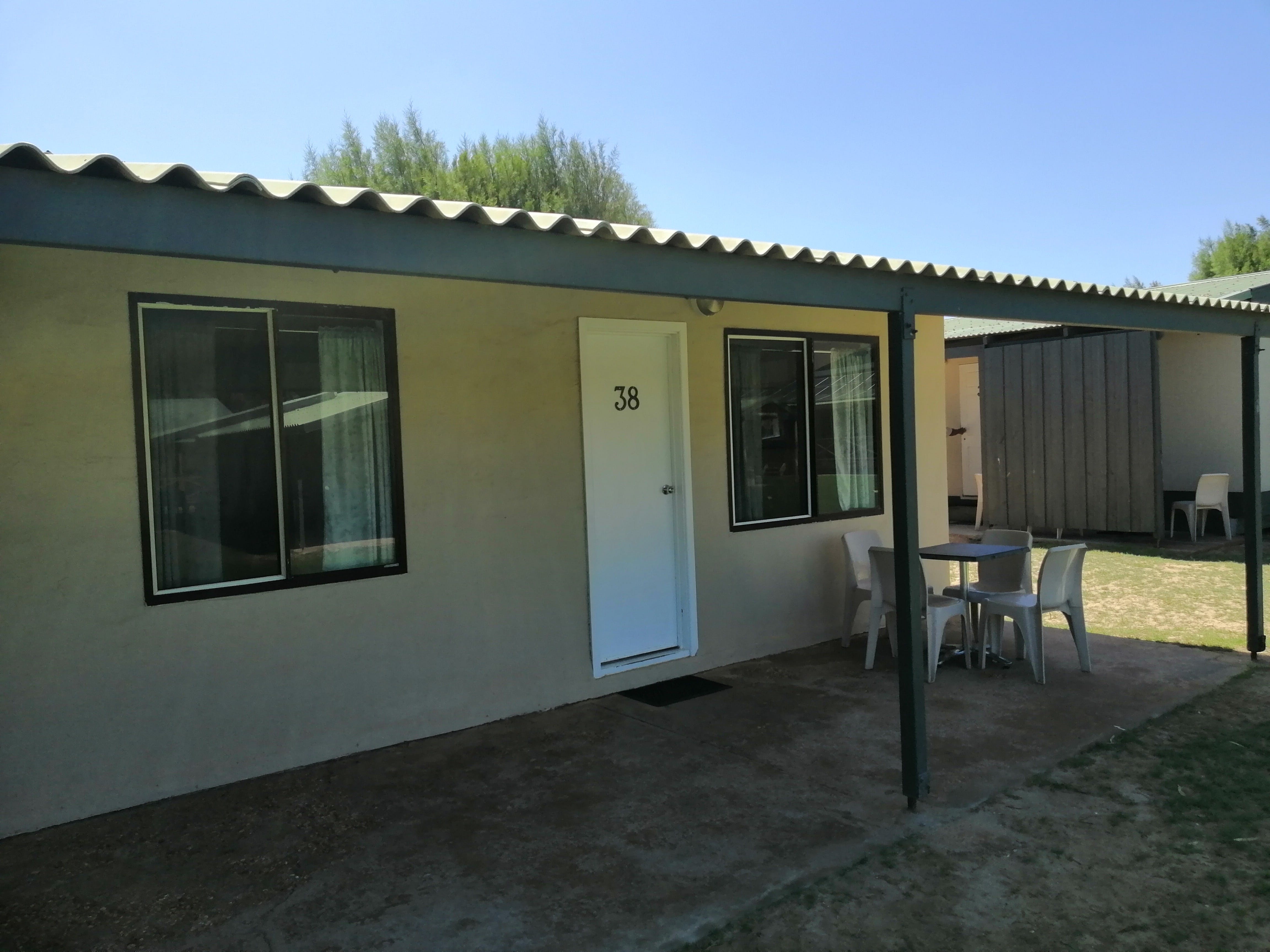 These basic budget-style Cabins have a Double bed in the bedroom, with a Single bed and trundle bed in the kitchen area. The kitchen is equipped with a two-burner electric hotplate, a small microwave and a bar-sized refrigerator. Ideal for budget travellers and backpackers, these Cabins sleep a maximum of two adults and two children. Bed linen and bath towels are provided and guests have use of the Park ablution blocks for shower and toilet.