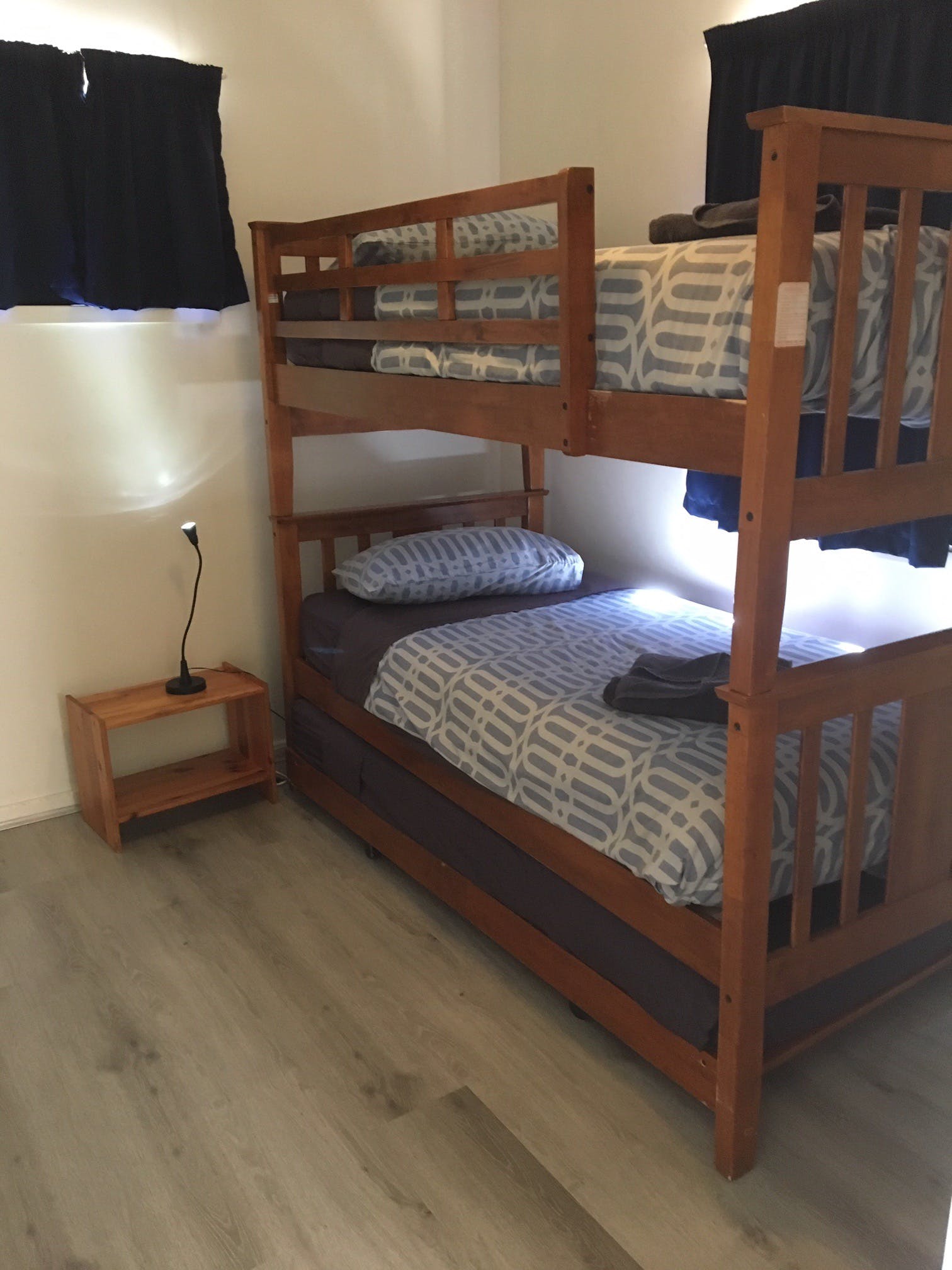 The 2 Bedroom Deluxe Villas are located approximately 50 metres from the beachfront in a handy location close to the swimming pool and shaded barbecue area. The first bedroom contains one queen bed and the second bedroom contains either two single beds (one being a roll-away full-size Single bed with a quality mattress) or bunks and a roll-away. Enjoy in-room WiFi and Foxtel air-conditioned with ceiling fans, and a private balcony to relax. This villa will accommodate five guests.