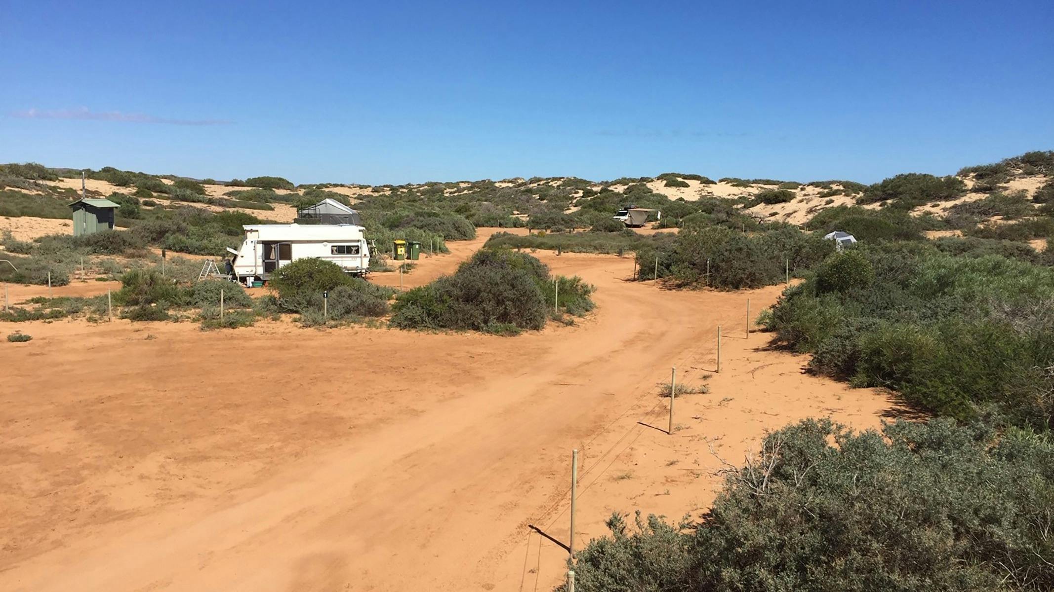 One K Campground features seven camp sites for tents, regular-size high-clearance 4WD campervans and high-clearance caravans or camper trailers that can be towed on soft sand and are towed by 4WD vehicles. Camping fees apply.