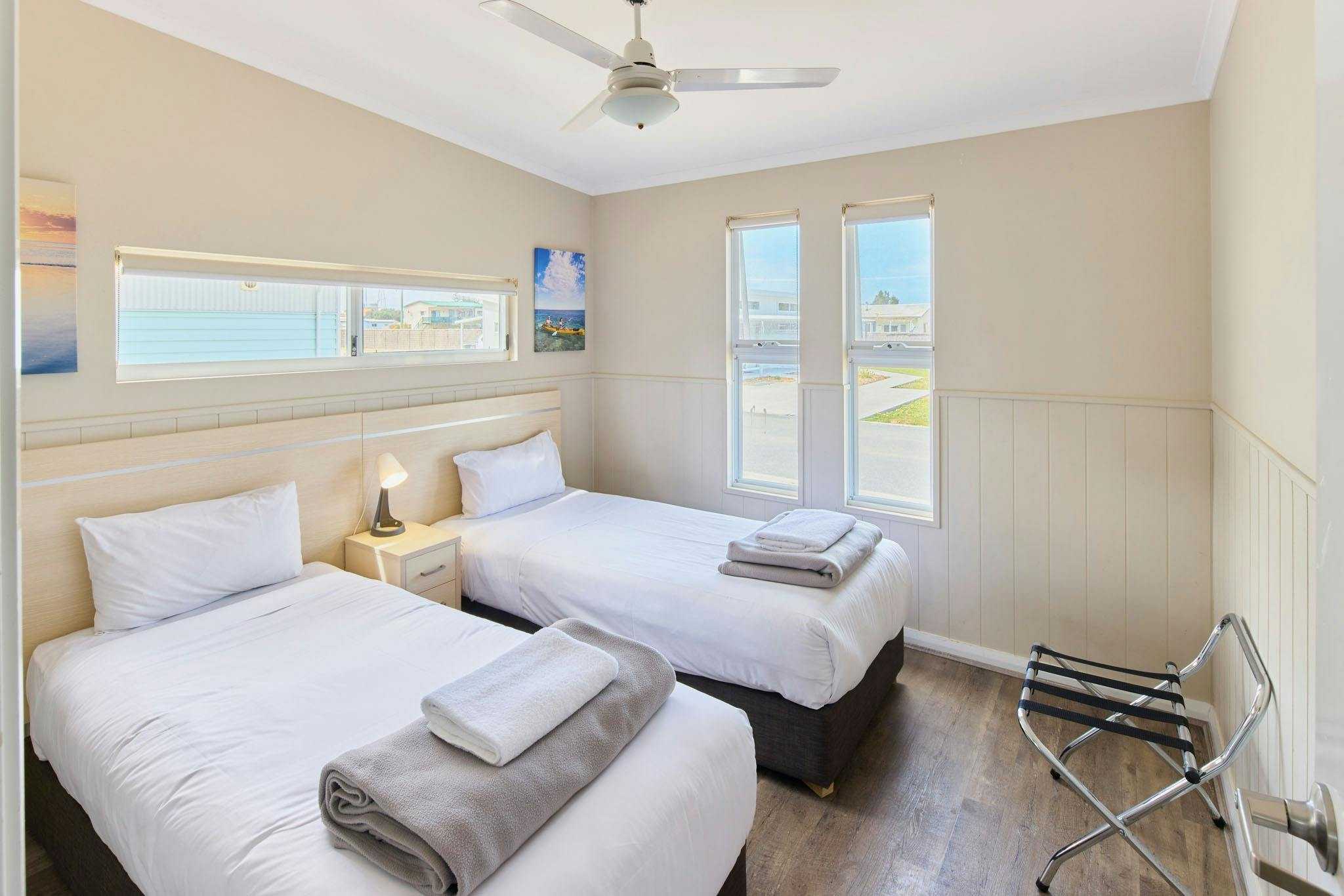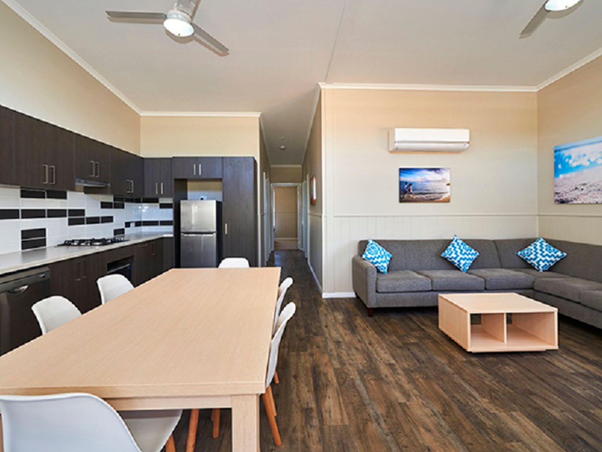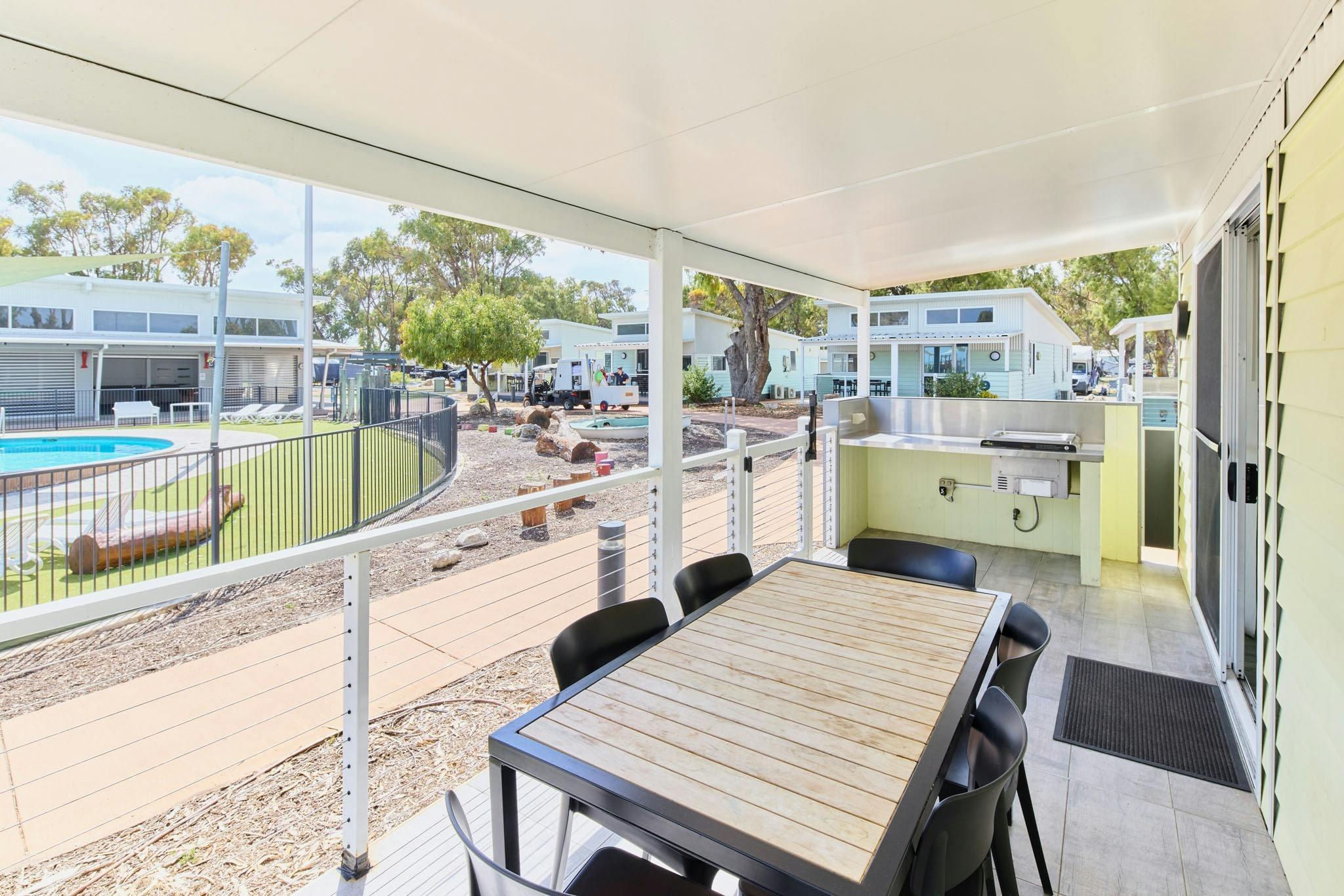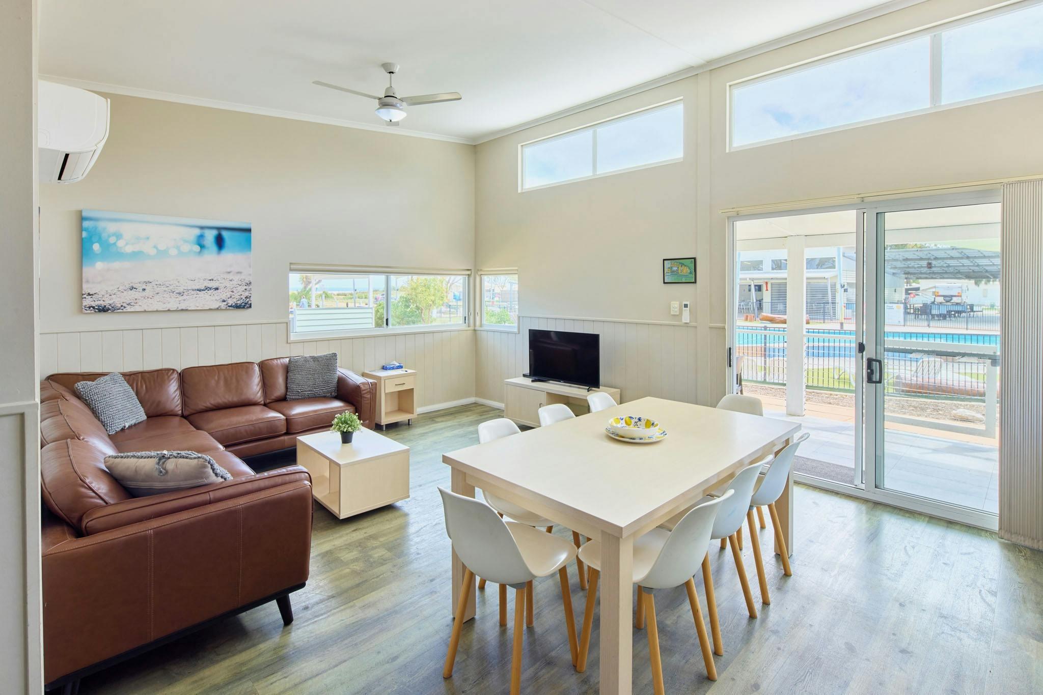 Ideal villa for a family or group of friends, overlooking the pool and close to facilities. This 2 Bedroom Villa has 1 queen and 2 single bunks. No pets allowed in the villas or on the villa decks.