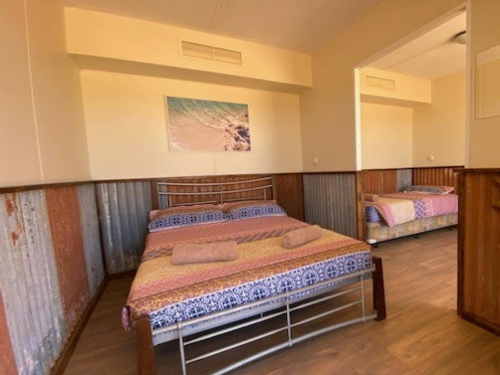 The Stockmen's Rooms offer 7 individual guest rooms for shared accommodation, an ideal and social base for friends or family. Each room is furnished with either 1 queen bed or 2 single beds, complete with all linen and towels provided. Guests share a spacious, fully-equipped communal kitchen and dining room. This central area includes a gas cooktop, fridges, a freezer, and a BBQ, with verandas and a fire pit perfect for relaxing evenings. Shared bathrooms (3 toilets and showers) are conveniently located at the back of the complex. Stockmen's is situated just 2km from the Ningaloo Reef and offers private beach access (4WD required). The entire complex can also be booked privately for groups of up to 14 people.