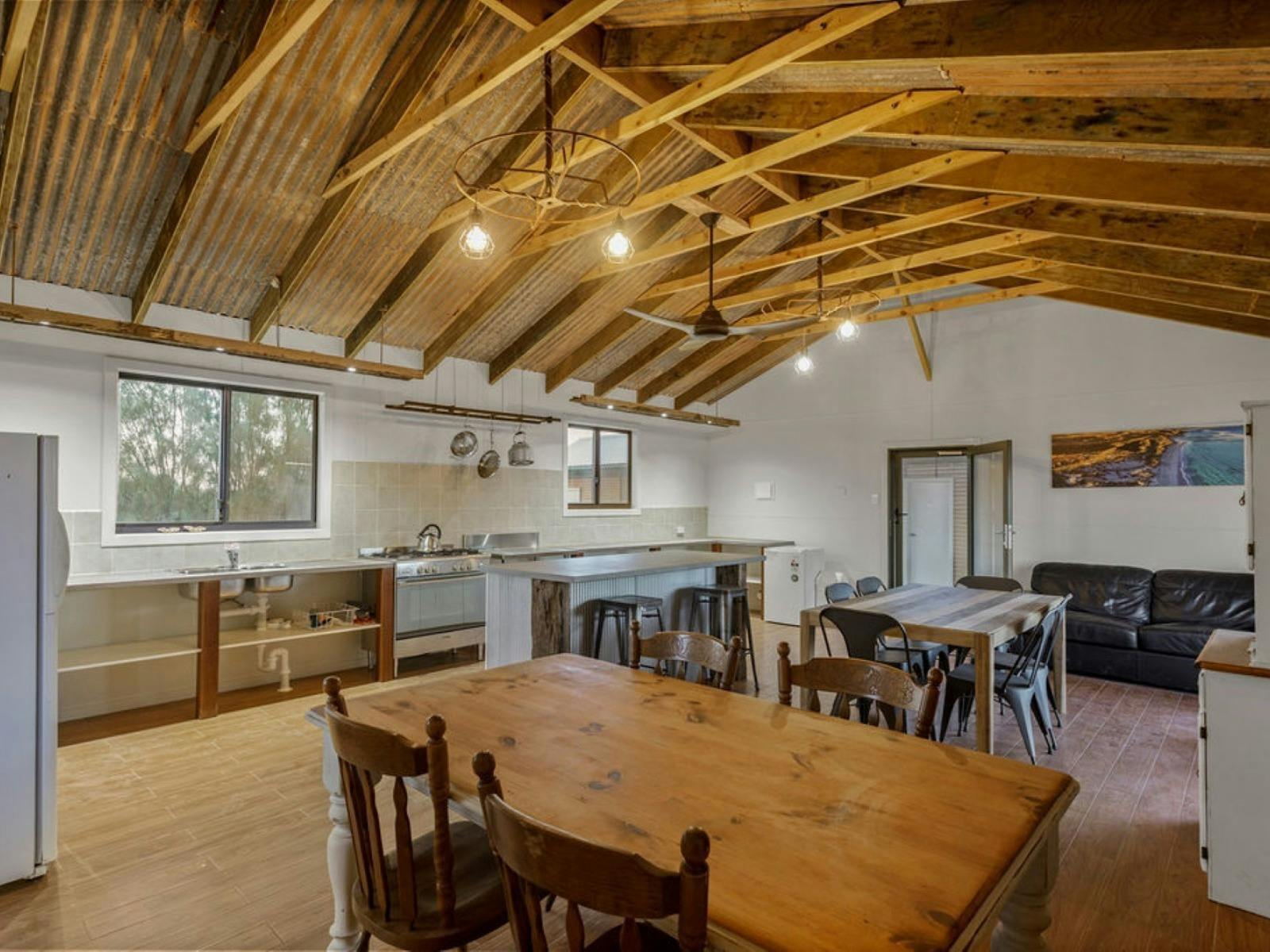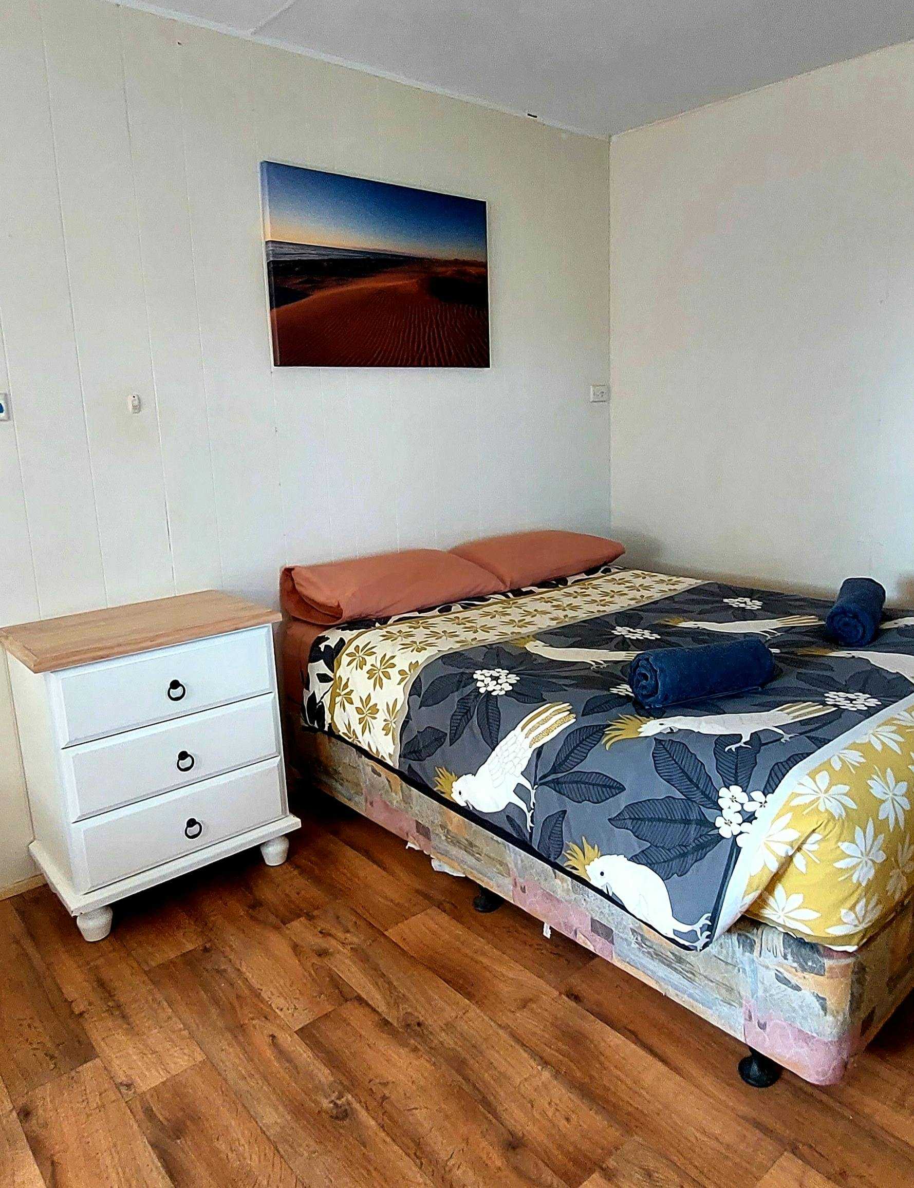 Charlie's offers a simple, self-contained solution for guests who prefer basic comforts over camping, while still fully enjoying the unique experience Warroora Station provides. This accommodation is ideal for up to 5 guests, featuring two bedrooms, a small living room, and a fully equipped kitchen with a fridge/freezer and all necessary utensils, crockery, and cutlery. Charlie's is located 2km from the beach and includes a small veranda for relaxing. Please note: This unit does not have an internal bathroom. Instead, you have a private bathroom reserved just for you, located within the shared ablution block only a few steps away. Linen and towels are supplied for a hassle-free stay. Consistent with Warroora's reliance on alternative energy sources, there is no air conditioning.