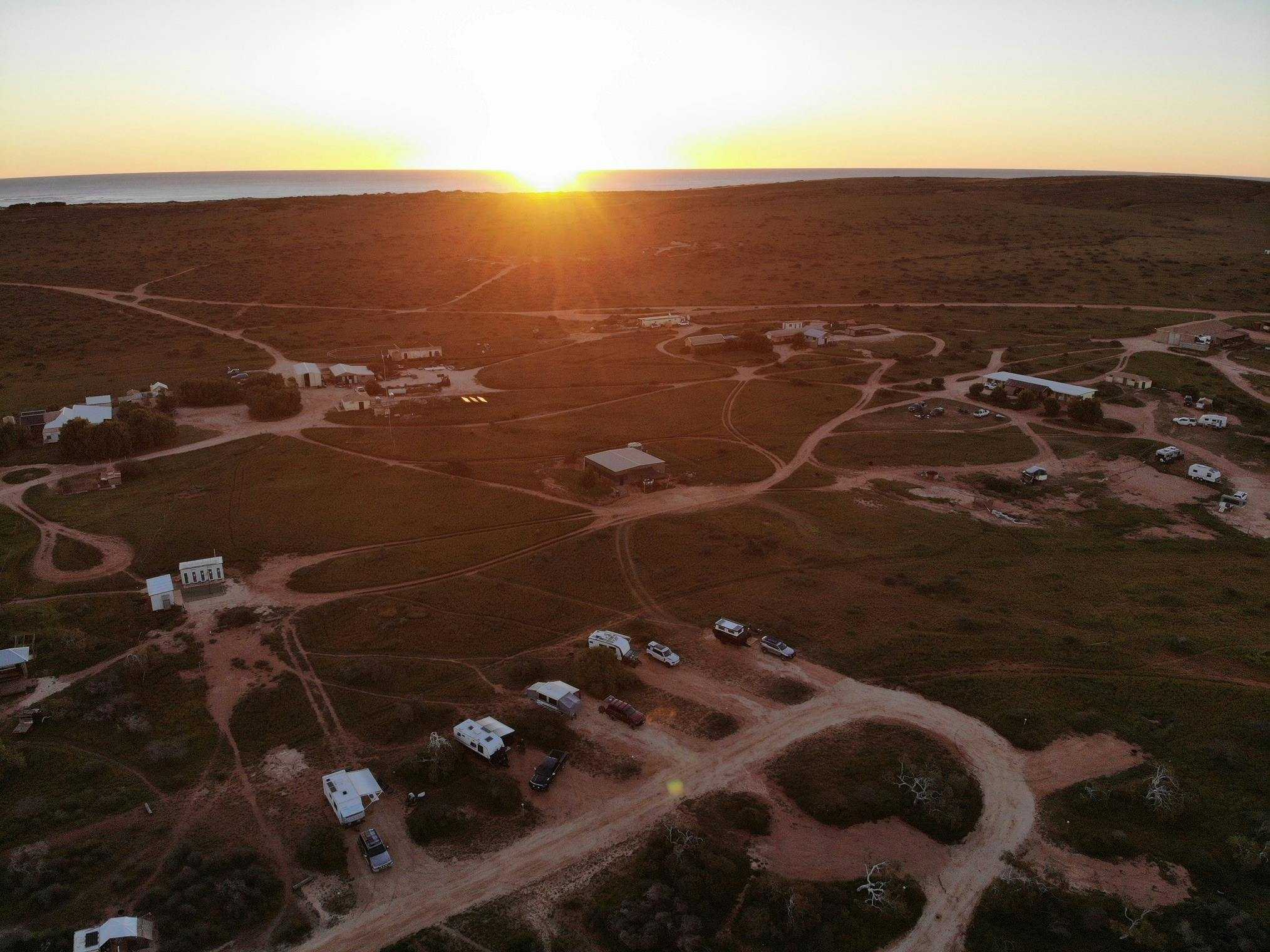 This distinctive station campground features unpowered campsites with fire pits, providing a warm outback ambiance. Only 1500 meters from pristine beaches, guests enjoy access to showers, toilets, and a basic camp kitchen for a comfortable wilderness retreat.