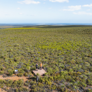 Comprised of firm yellow sand, the trail is mostly flat, with only a few gentle rises. It is well signed with emu footprint markers. From the highest point the views extend out across the desert to the Indian Ocean in the west. There is a viewing platform about 500 metres from the start of the trail. Find out more.