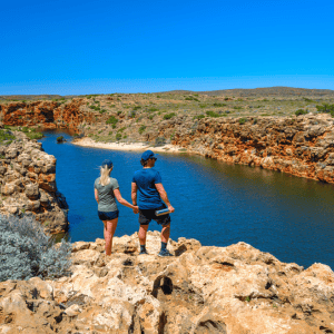 Mandu Mandu track follows the northern ridge of the gorge, offering stunning views down to the Ningaloo Reef. The trail leads into the creek bed from where you follow the base of the gorge back to the car park. Please be aware this is a class 4 trail that is often rough and requires walkers to possess a moderate to high level of fitness. Find out more.
